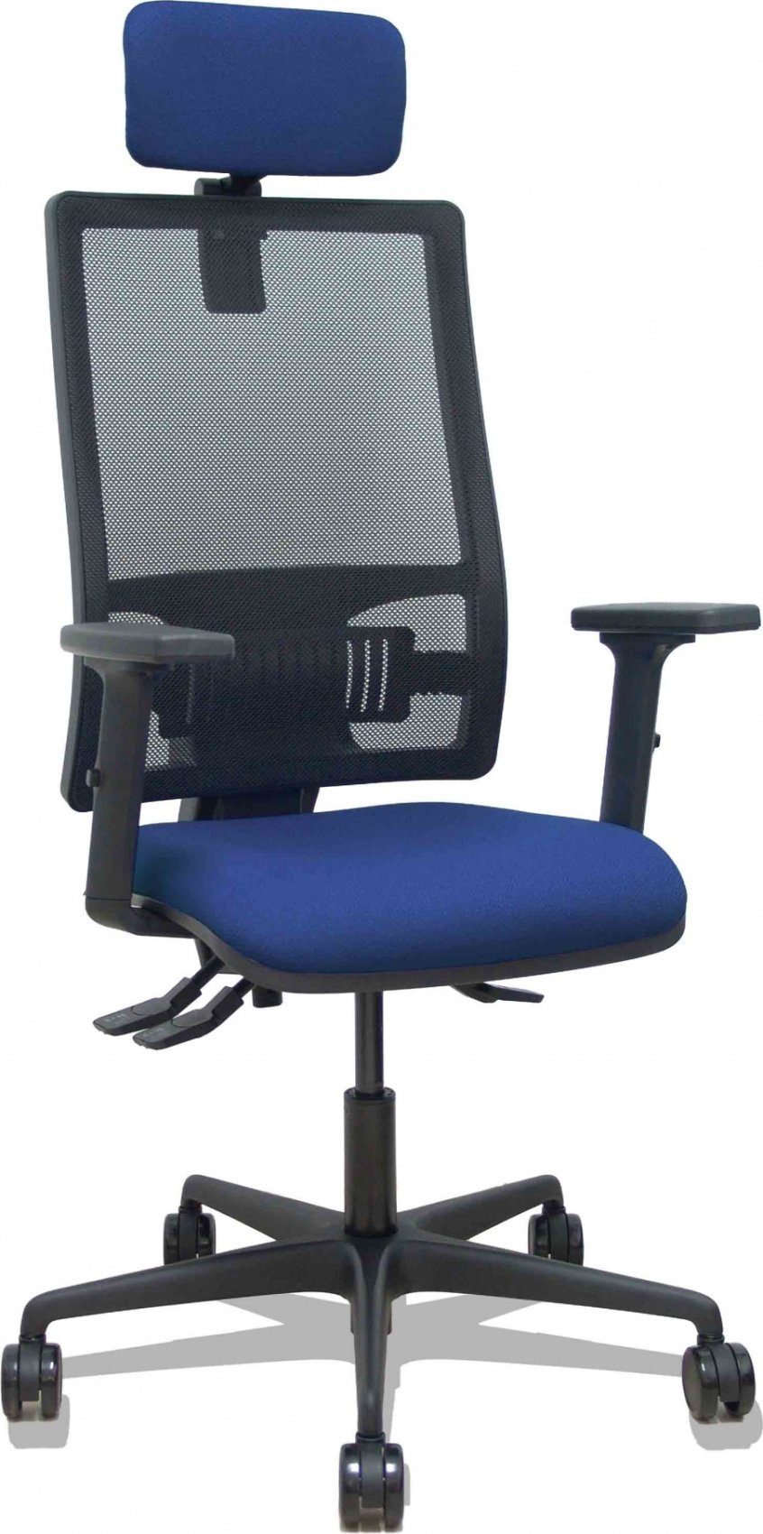 Piqueras y Crespo Silla Bormate asincro malla negra asiento bali azul marino brazos 2D ruedas 65mm cabecero regulable