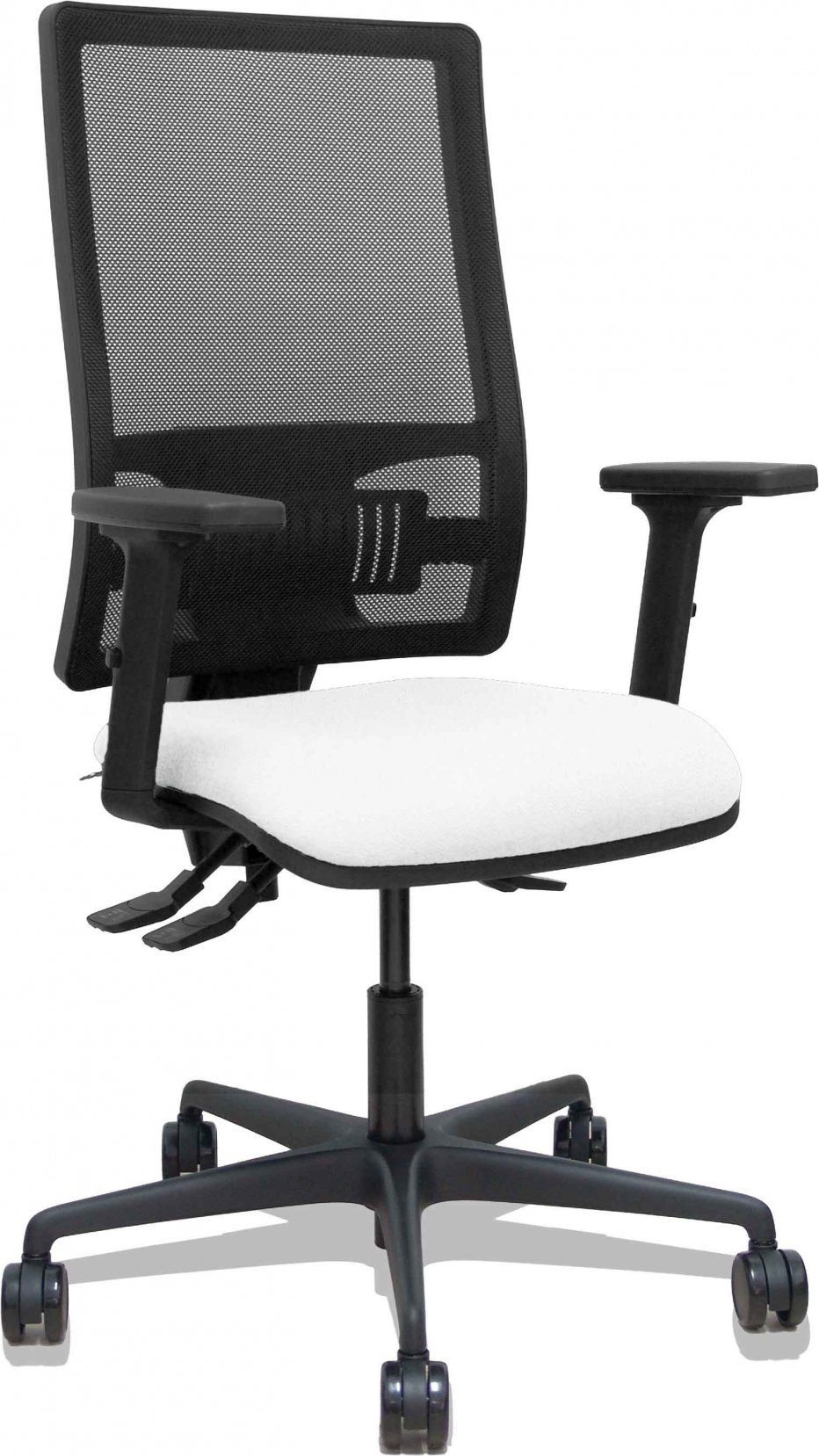 Piqueras y Crespo Silla Bormate asincro malla negra asiento bali blanco brazos 2D ruedas 65mm