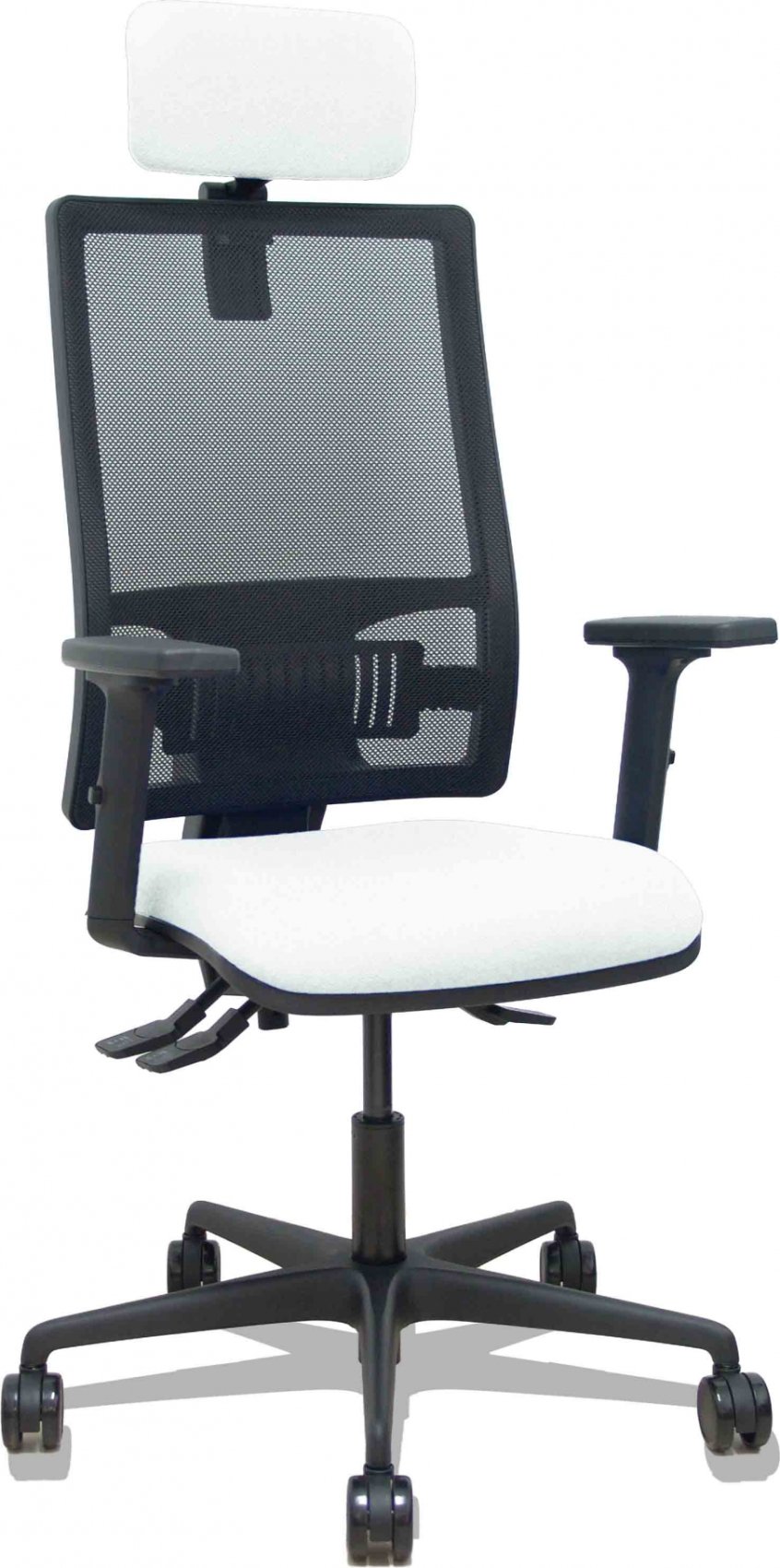 Piqueras y Crespo Silla Bormate asincro malla negra asiento bali blanco brazos 2D ruedas 65mm cabecero regulable
