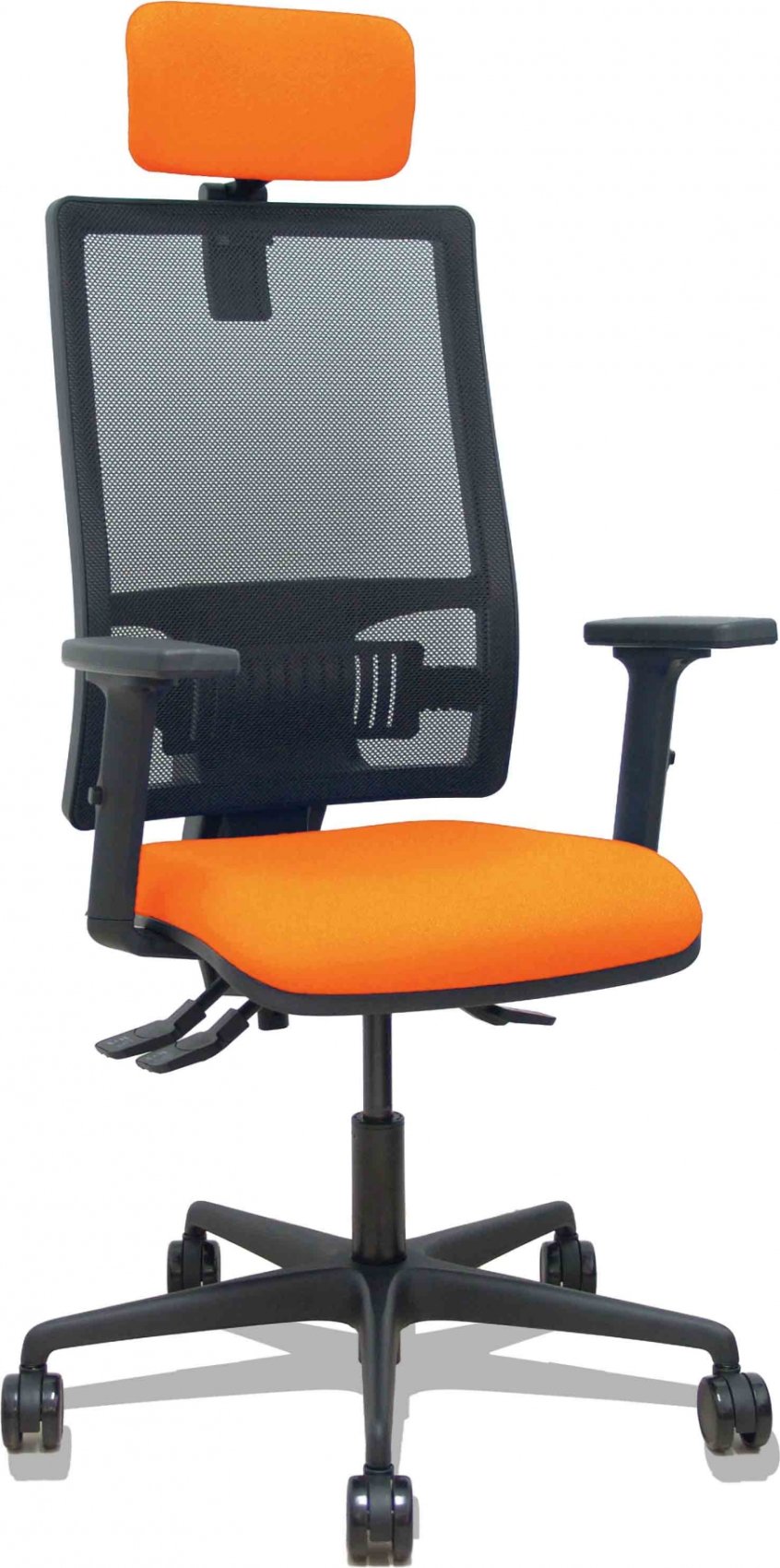 Piqueras y Crespo Silla Bormate asincro malla negra asiento bali naranja brazos 2D ruedas 65mm cabecero regulable