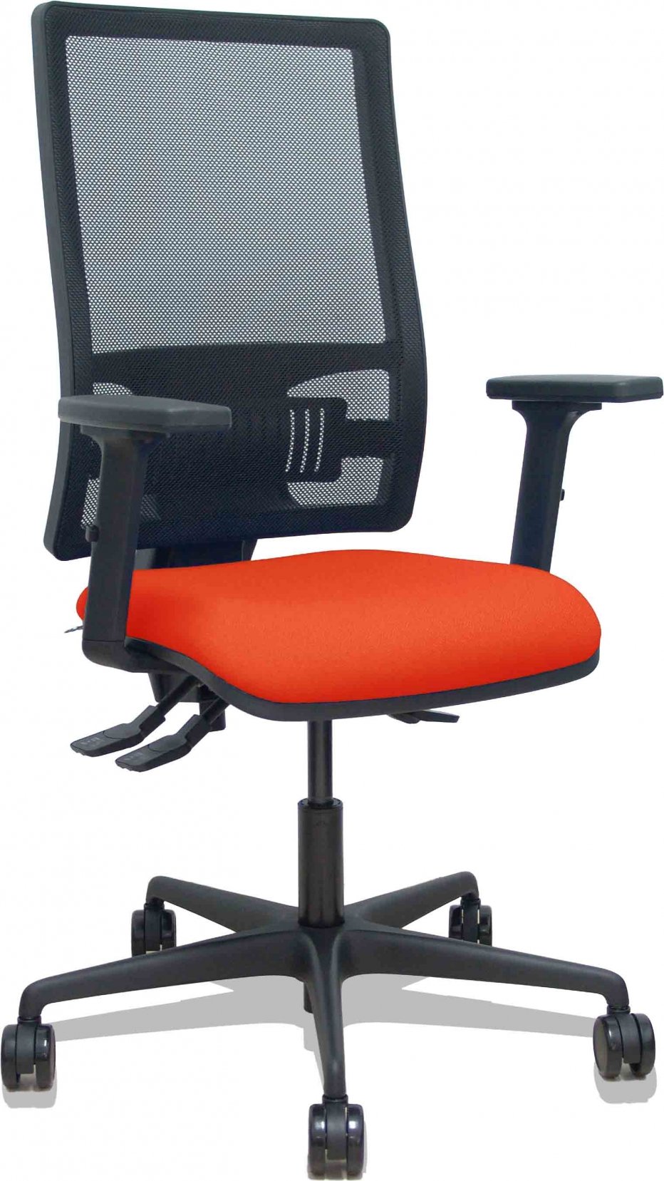 Piqueras y Crespo Silla Bormate asincro malla negra asiento bali naranja oscuro brazos 2D ruedas 65mm