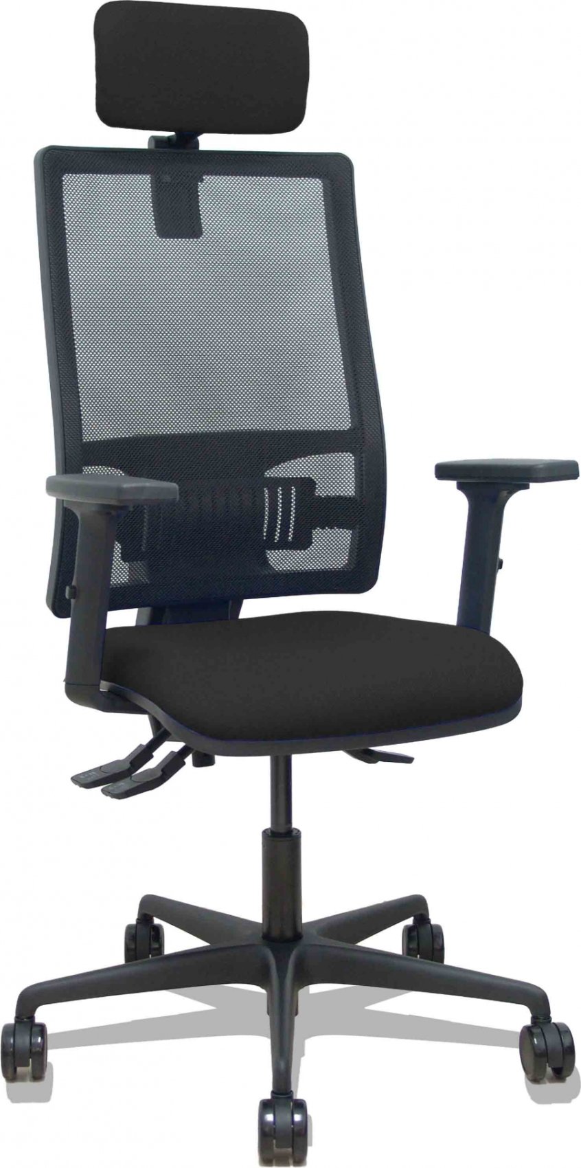Piqueras y Crespo Silla Bormate asincro malla negra asiento bali negro brazos 2D ruedas 65mm cabecero regulable