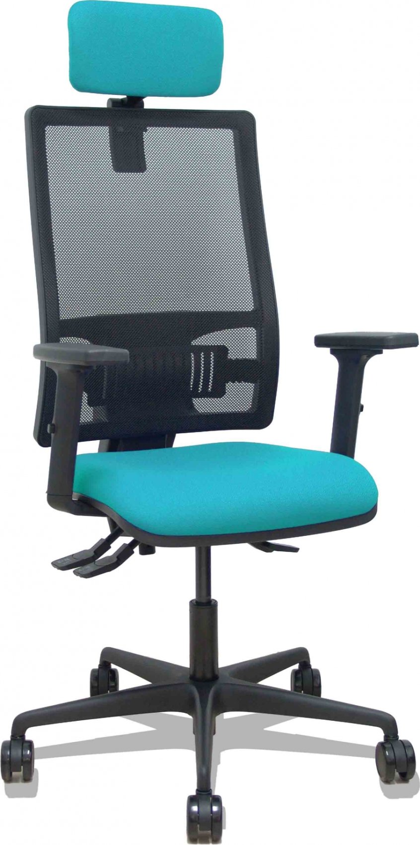 Piqueras y Crespo Silla Bormate asincro malla negra asiento bali turquesa brazos 2D ruedas 65mm cabecero regulable