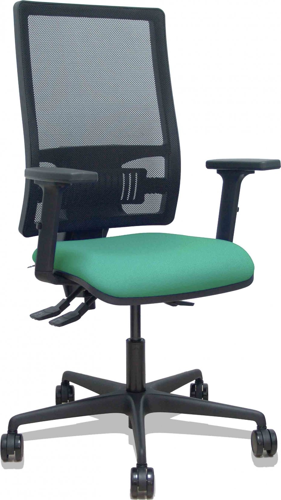 Piqueras y Crespo Silla Bormate asincro malla negra asiento bali verde esmeralda brazos 2D ruedas 65mm