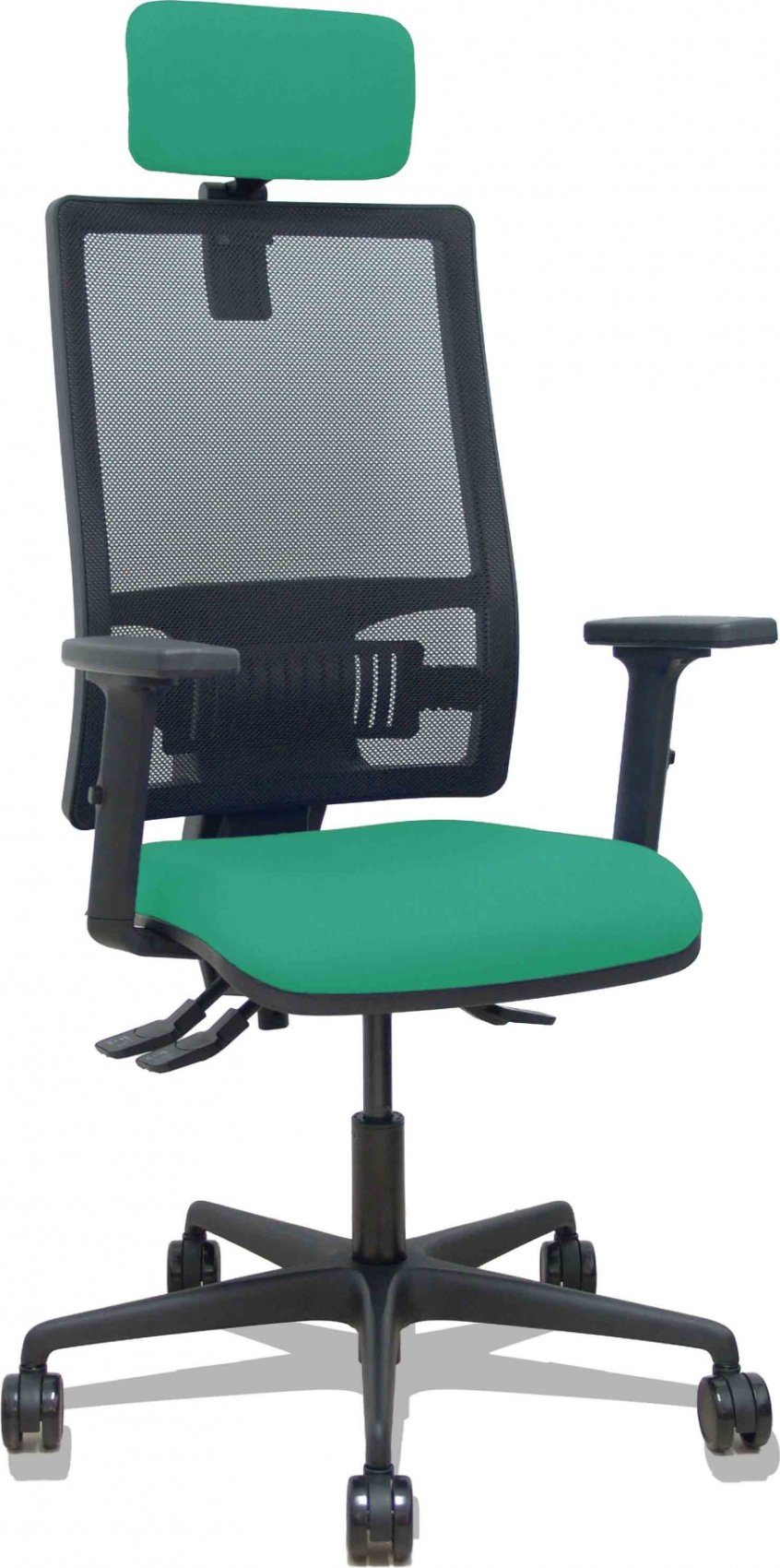Piqueras y Crespo Silla Bormate asincro malla negra asiento bali verde esmeralda brazos 2D ruedas 65mm cabecero regulable