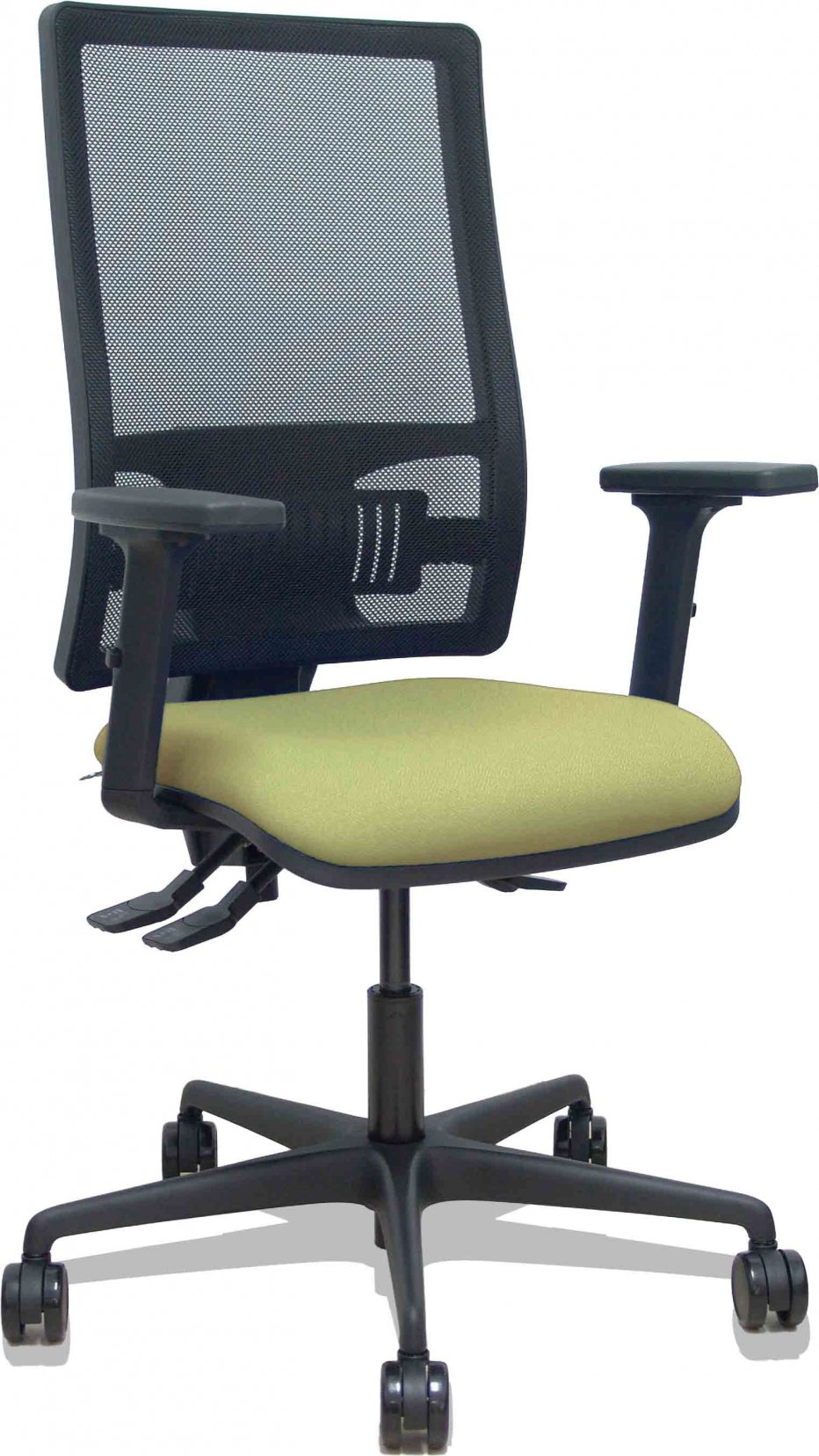 Piqueras y Crespo Silla Bormate asincro malla negra asiento bali verde oliva brazos 2D ruedas 65mm