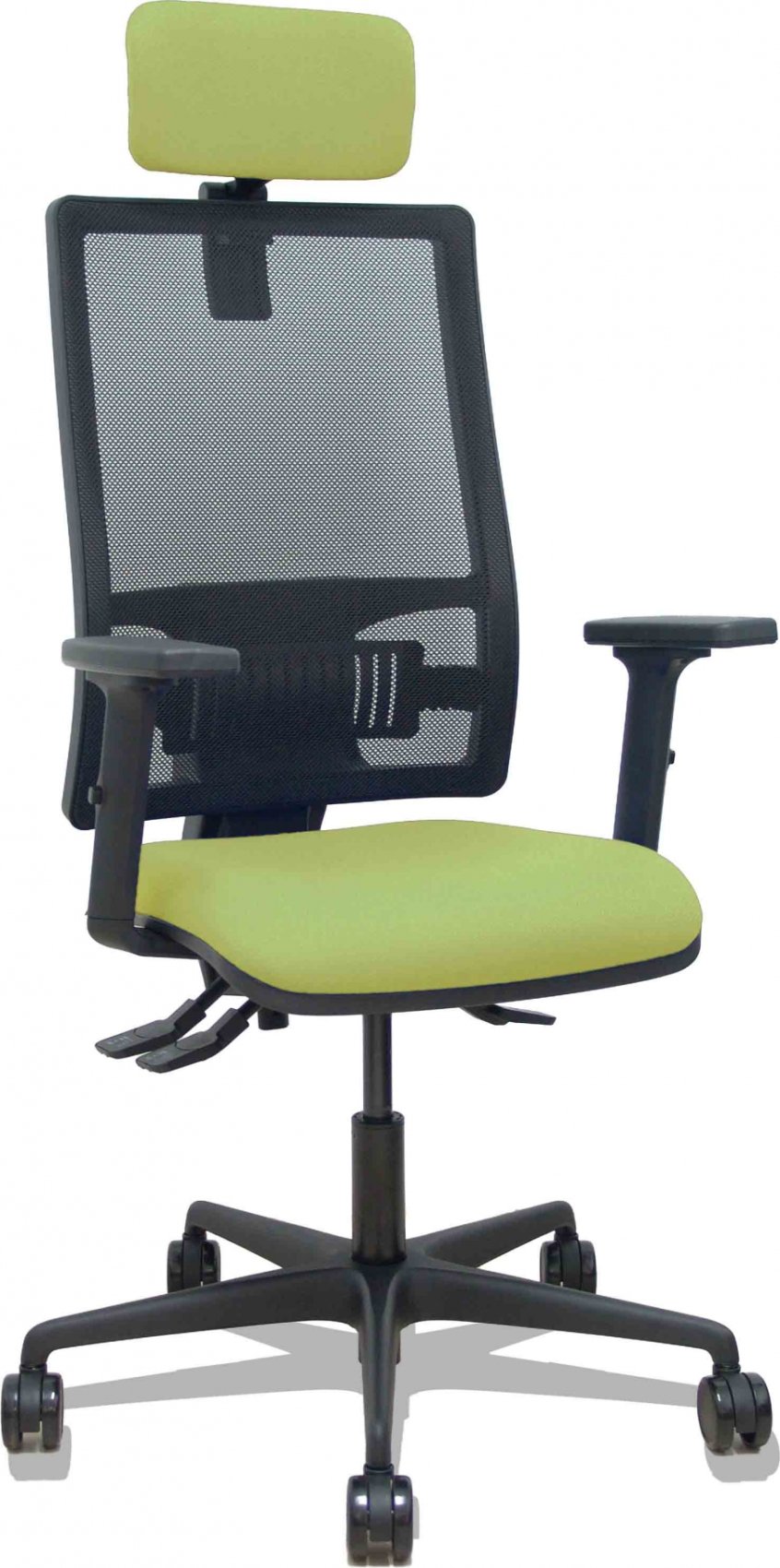 Piqueras y Crespo Silla Bormate asincro malla negra asiento bali verde oliva brazos 2D ruedas 65mm cabecero regulable