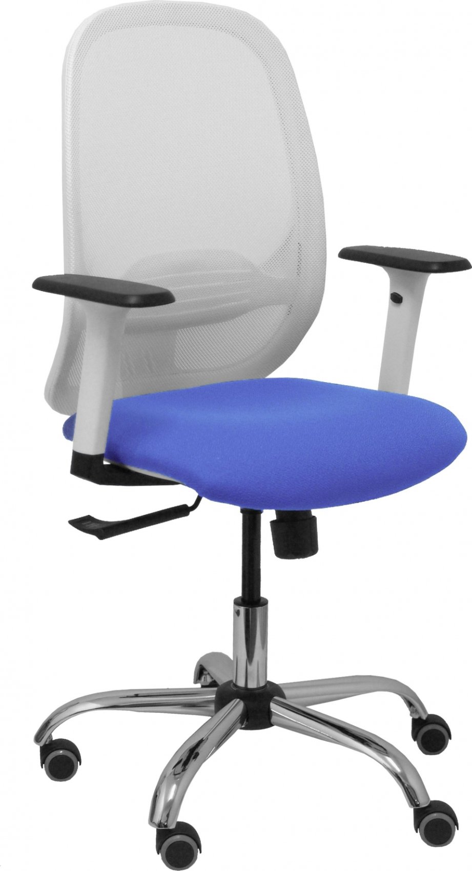 Piqueras Y Crespo Silla Cilanco Blanca Malla Blanca Asiento Bali Azul Claro Brazo Regulable Base Cromada Ruedas De Parqué