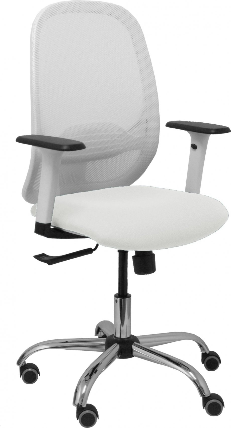 Piqueras y Crespo Silla Cilanco blanca malla blanca asiento bali blanco brazo regulable base cromada ruedas de parqué