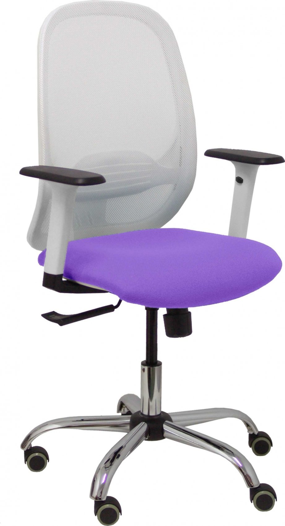 Piqueras y Crespo Silla Cilanco blanca malla blanca asiento bali lila brazo regulable base cromada ruedas de parqué