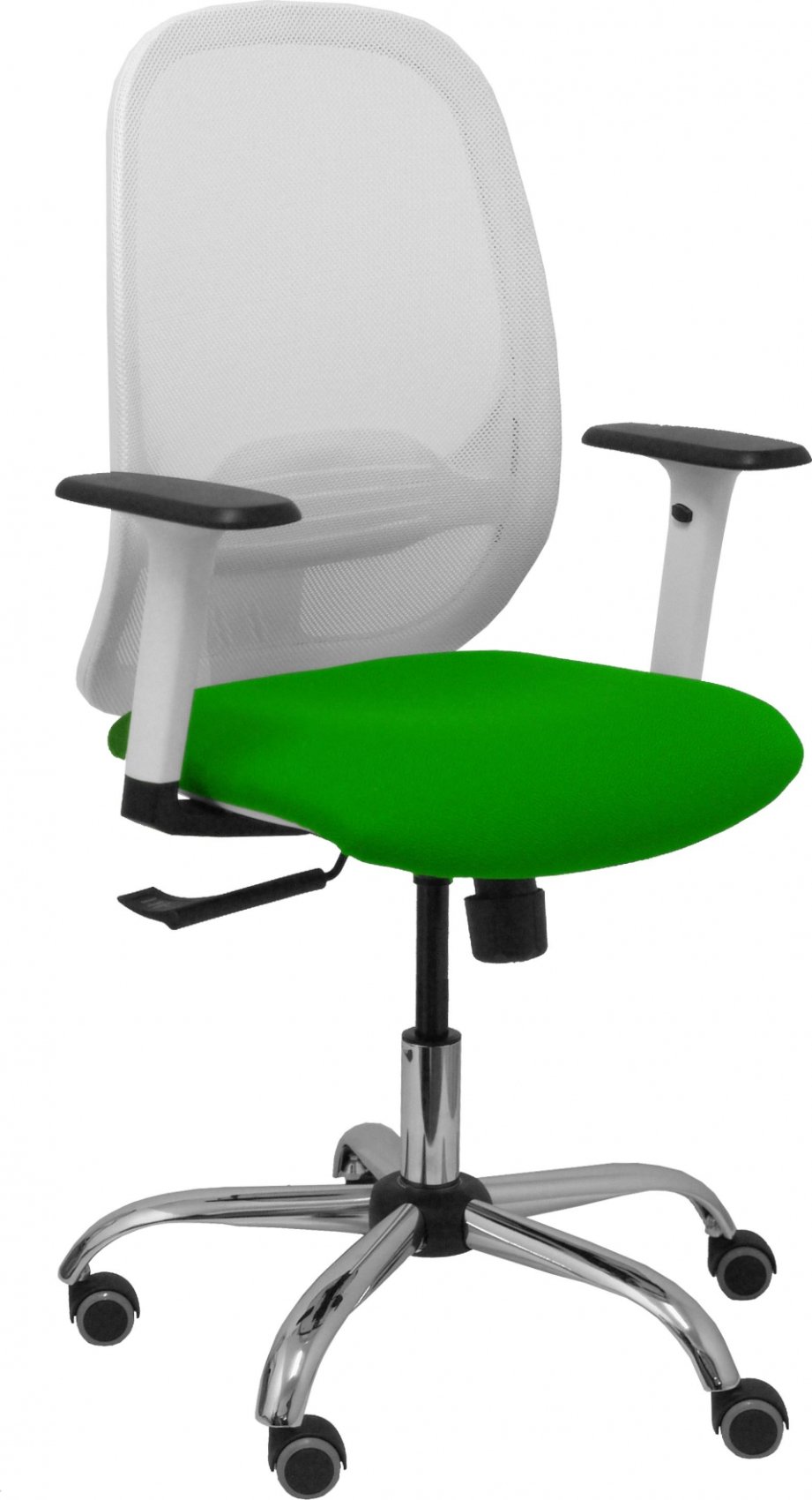 Piqueras y Crespo Silla Cilanco blanca malla blanca asiento bali verde brazo regulable base cromada ruedas de parqué