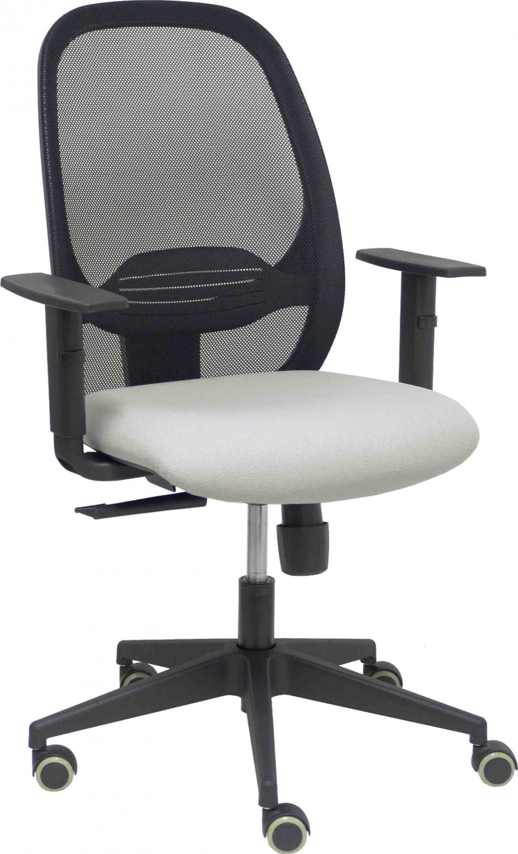 Piqueras y Crespo Silla Cilanco negra malla negra asiento bali gris claro brazo regulable.
