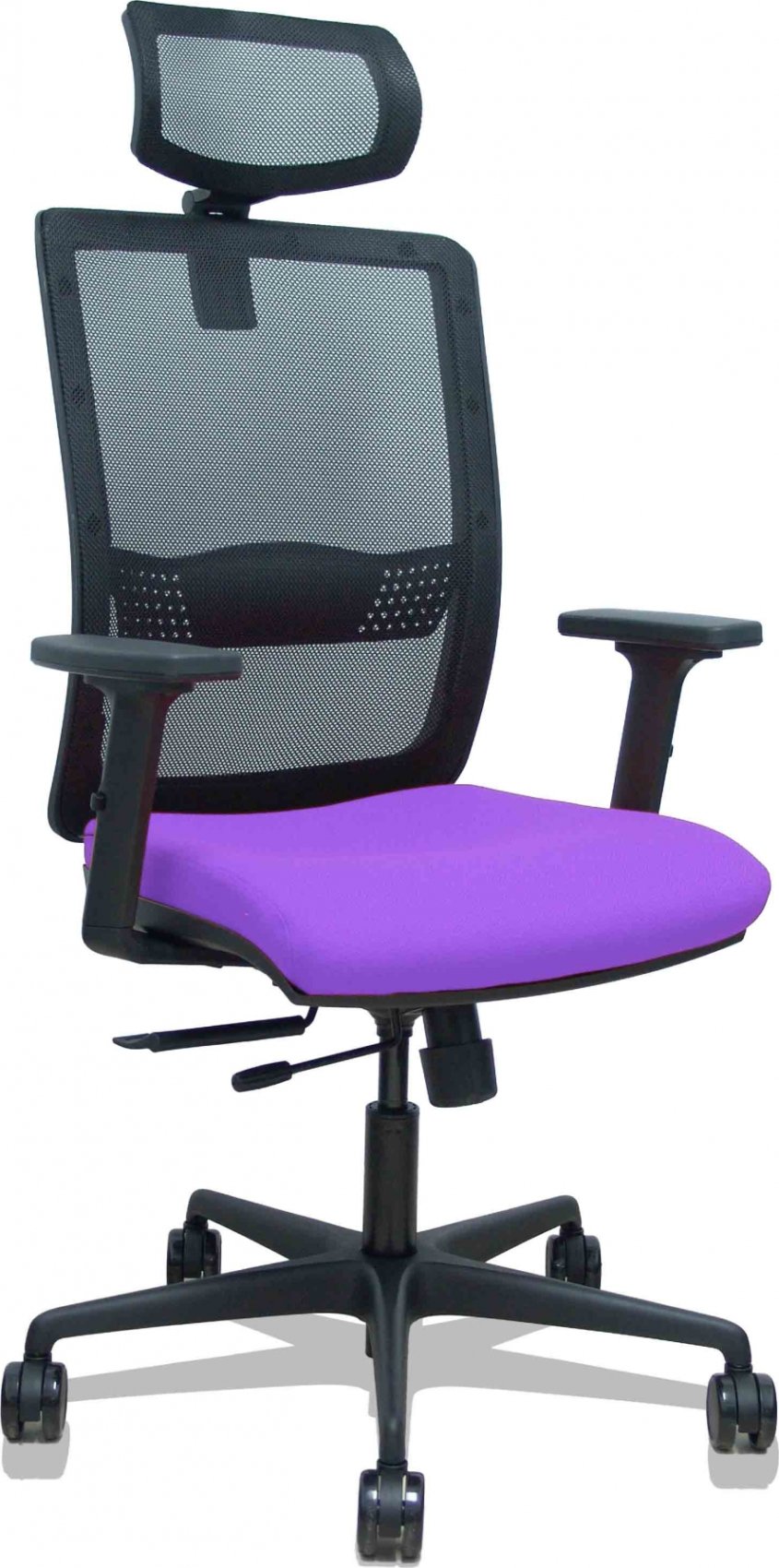 Piqueras y Crespo Silla Haches traslack malla negra asiento bali lila brazos 2D ruedas 65mm cabecero regulable
