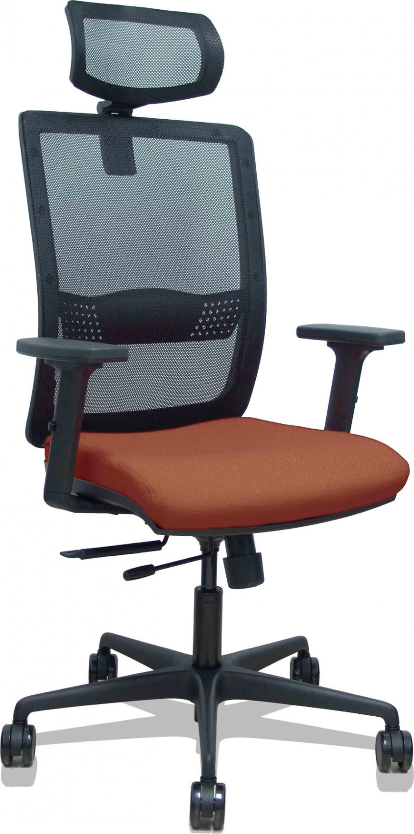 Piqueras y Crespo Silla Haches traslack malla negra asiento bali marrón brazos 2D ruedas 65mm cabecero regulable