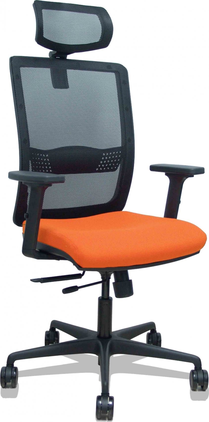 Piqueras y Crespo Silla Haches traslack malla negra asiento bali naranja brazos 2D ruedas 65mm cabecero regulable