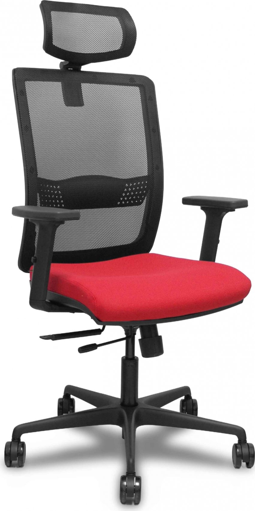 Piqueras y Crespo Silla Haches traslack malla negra asiento bali rojo brazos 2D ruedas 65mm cabecero regulable