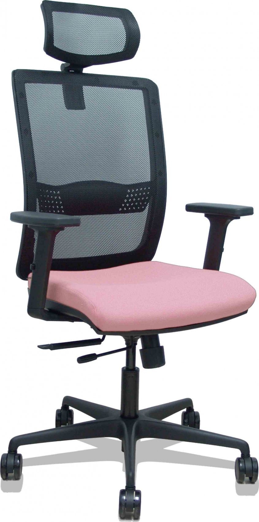 Piqueras y Crespo Silla Haches traslack malla negra asiento bali rosa brazos 2D ruedas 65mm cabecero regulable