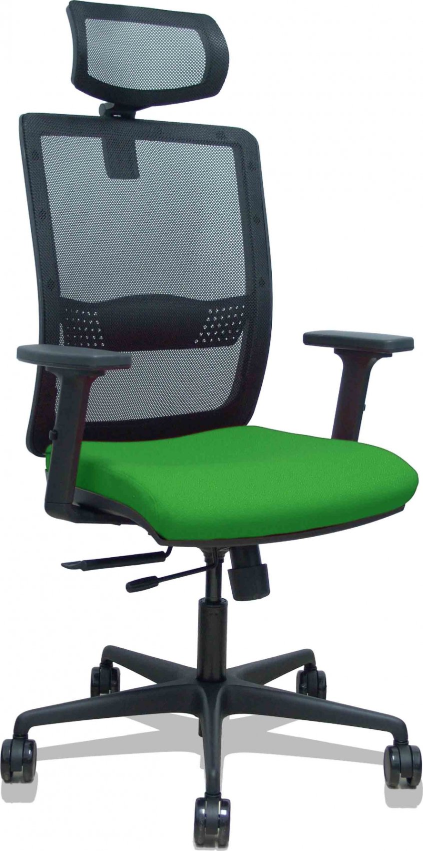 Piqueras y Crespo Silla Haches traslack malla negra asiento bali verde brazos 2D ruedas 65mm cabecero regulable