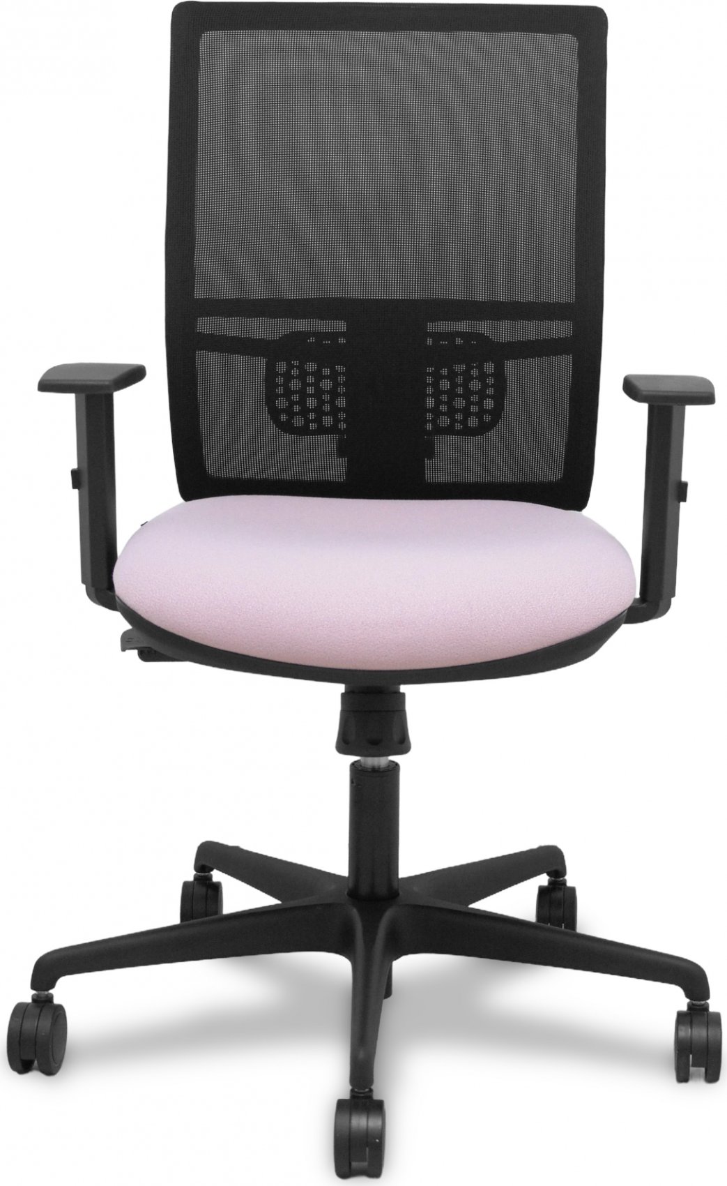 Piqueras y Crespo Silla Yunquera sincro malla negra bali rosa brazo regulable.