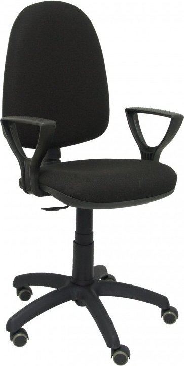 PIQUERAS Y CRESPO Modelo Ayna - Silla de oficina ergonómica con mecanismo de contacto permanente, regulable en altura y ruedas de parquet - Asiento y respaldo tapizados en tejido BALI color negro (BRAZOS FIJOS INCLUIDOS) 04CPBALI840BGOLFRP