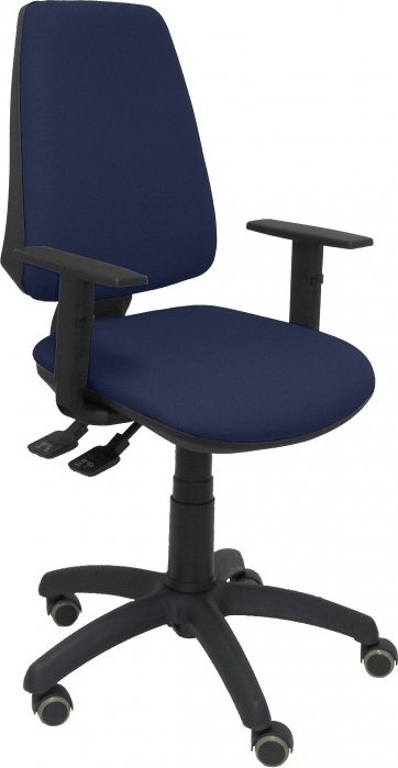 PIQUERAS Y CRESPO Modelo Elche S - Silla de oficina ergonómica con mecanismo sincro, regulable en altura y ruedas de parquet - Asiento y respaldo tapizados en tejido BALI color azul marino (BRAZOS REGULABLES EN ALTURA) 14SBALI200B10RP