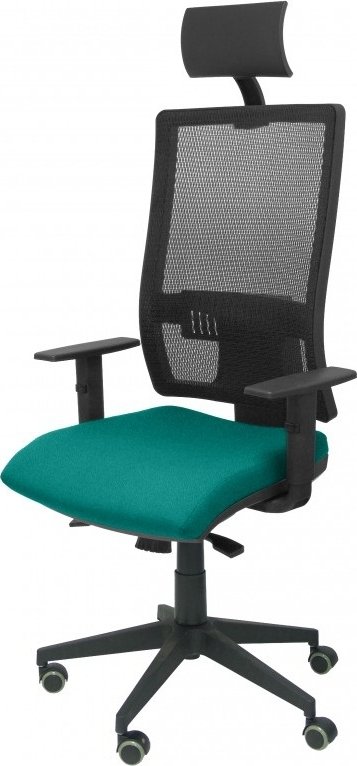 PIQUERAS Y CRESPO Modelo Horna - Silla de oficina ergonómica con mecanismo sincro y regulable en altura - Respaldo alto de malla transpirable con cabecero y asiento tapizado en tejido BALI color verde claro (CON CABECERO INCLUIDO) 10SBALI39