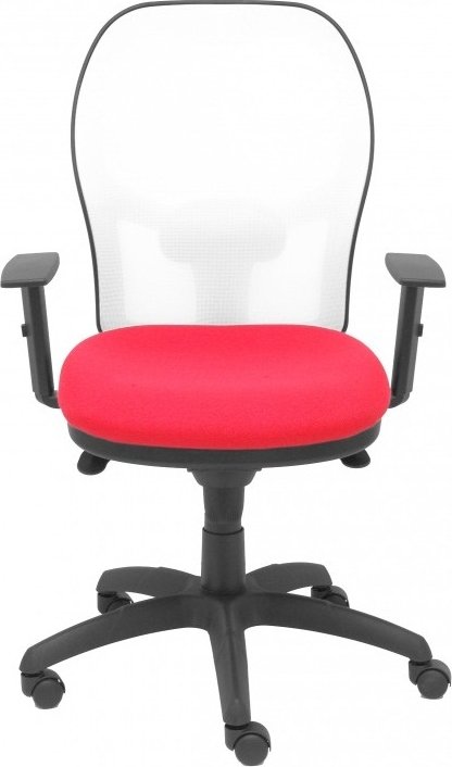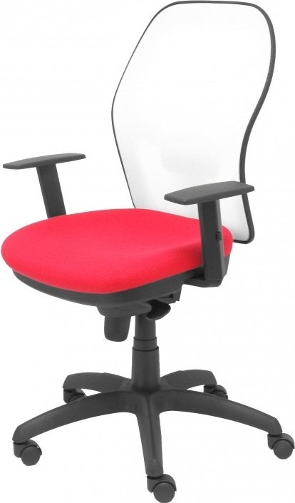 PIQUERAS Y CRESPO Modelo Jorquera - Silla de oficina ergonómica con mecanismo sincro, brazos regulables y ajustable en altura - Respaldo de malla transpirable en color blanco y asiento tapizados en tejido BALI color rojo 15SBBALI350