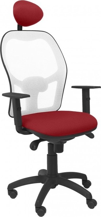 PIQUERAS Y CRESPO Modelo Jorquera - Silla de oficina ergonómica con mecanismo sincro, brazos regulables y ajustable en altura Respaldo de malla transpirable en color blanco y asiento tapizados en tejido BALI color granate (CON CABECERO) 15SBBALI933C
