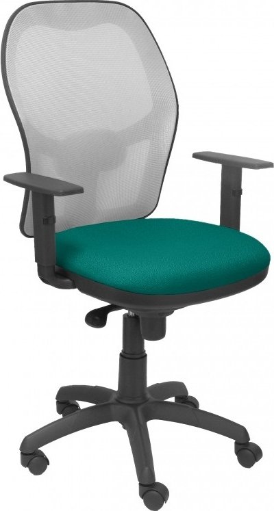 PIQUERAS Y CRESPO Modelo Jorquera - Silla de oficina ergonómica con mecanismo sincro, brazos regulables y ajustable en altura - Respaldo de malla transpirable en color gris y asiento tapizados en tejido BALI color verde claro 15SGRBALI39