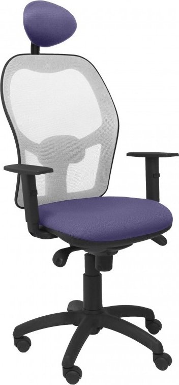 PIQUERAS Y CRESPO Modelo Jorquera - Silla de oficina ergonómica con mecanismo sincro, brazos regulables y ajustable en altura Respaldo de malla transpirable en color gris y asiento tapizados en tejido BALI color azul claro (CON CABECERO) 15SGRBALI261C