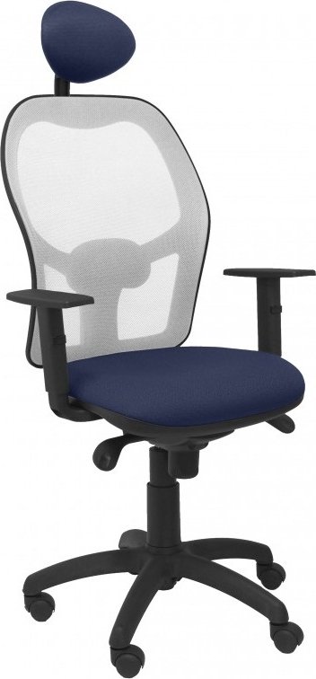 PIQUERAS Y CRESPO Modelo Jorquera - Silla de oficina ergonómica con mecanismo sincro, brazos regulables y ajustable en altura Respaldo de malla transpirable en color gris y asiento tapizados en tejido BALI color azul marino (CON CABECERO) 15SGRBALI200C