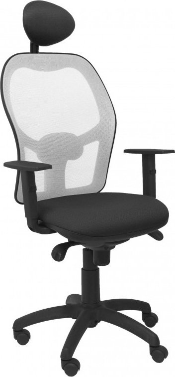 PIQUERAS Y CRESPO Modelo Jorquera - Silla de oficina ergonómica con mecanismo sincro, brazos regulables y ajustable en altura Respaldo de malla transpirable en color gris y asiento tapizados en tejido BALI color negro (CON CABECERO) 15SGRBALI840C
