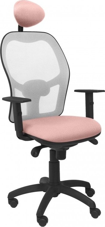 PIQUERAS Y CRESPO Modelo Jorquera - Silla de oficina ergonómica con mecanismo sincro, brazos regulables y ajustable en altura Respaldo de malla transpirable en color gris y asiento tapizados en tejido BALI color rosa pálido (CON CABECERO) 15SGRBALI710C