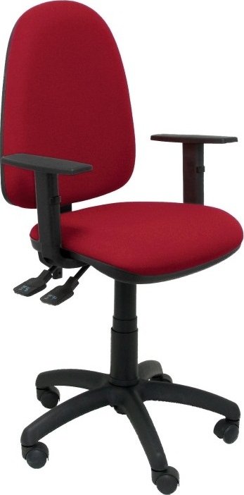 PIQUERAS Y CRESPO Modelo Tribaldos - Silla de oficina con mecanismo de contacto permanente de doble maneta y regulable en altura - Asiento y respaldo tapizados en tejido BALI color granate (BRAZOS REGULABLES INCLUIDOS)