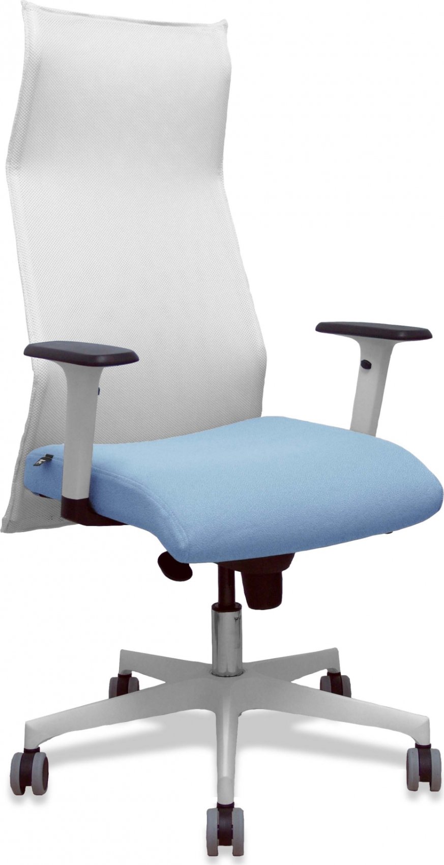 Piqueras y Crespo Sillón Sahuco blanco bali azul cielo brazos blancos base blanca ruedas parqué 65mm