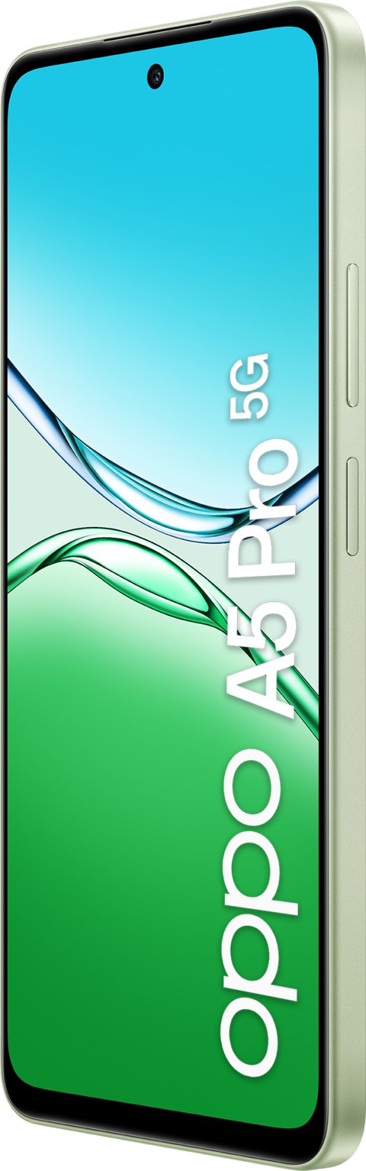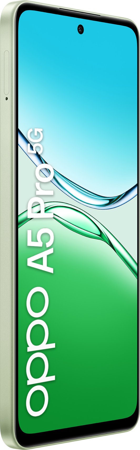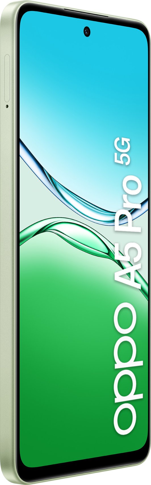 OPPO A5 Pro 5G. Diagonal de la pantalla: 16,9 cm (6.67"), Resolución de la pantalla: 1604 x 720 Pixeles. Frecuencia del procesador: 2,4 GHz, Familia de procesador: MediaTek Dimensity, Modelo del procesador: 6300. Capacidad de RAM: 8 GB, Tipo de RAM: LPDDR4X, Capacidad de almacenamiento interno: 256 GB. Resolución de la cámara trasera (numérica): 50 MP, Tipo de cámara trasera: Cámara doble. Capacidad de la tarjeta SIM: SIM doble. Sistema operativo instalado: Android 15. Capacidad de batería: 5800 mAh. Color del producto: Verde, Oliva. Peso: 194 g