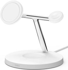 Belkin cargador inalambrico qi2 15w 3 en 1 para apple watch se apple watch series 6 apple watch series 5 apple watch series 4 apple watch series 3 apple watch series 2 apple watch series 1 iphone 12 pro max iphone 12 pro iphone 12 iphone 12 mini airpods pro apple airpods 2nd gen blanco
