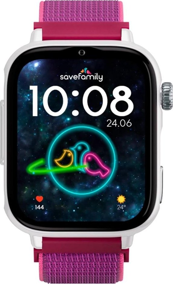 Savefamily Savewatch Plus 2 Reloj Inteligente Para Niños 4g Esfera Blanca Correa Tela Frambuesa