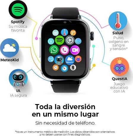 La IA incorporada ofrece juegos educativos, predicción meteorológica y asistencia rápida. Además, con los sensores de salud, padres e hijos podrán seguir de cerca la actividad física, el sueño y el bienestar diario.