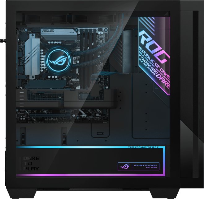 El ROG G700 está totalmente equipado para ser la estación de batalla perfecta para cualquier jugador. Con una capacidad de 58L, el G700 puede acomodar fácilmente GPU de triple ranura, lo que lo hace compatible plug and play con las tarjetas gráficas más potentes, incluida la NVIDIA® GPU GeForce RTX™. Una fuente de alimentación de tamaño completo de 1000 W puede impulsar la última versión de Intel® Procesadores Core™ Ultra, una tarjeta gráfica de tu elección y cualquier periférico que tengas sin sudar. Y con un amplio espacio para cuatro ventiladores de caja incluidos y soportes adicionales para radiadores, el chasis del G700 ofrece un rendimiento de enfriamiento excepcional incluso cuando se combina con hardware de alto rendimiento.
