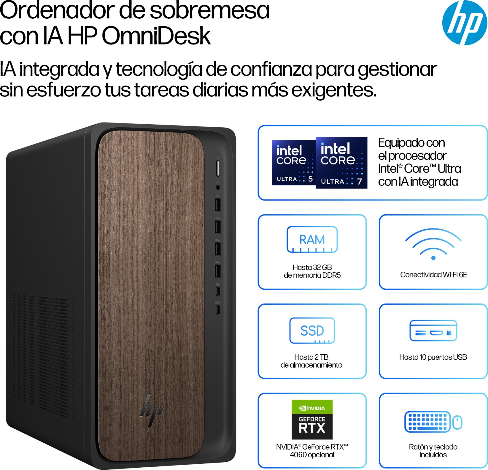 Hp Omnidesk Desktop Ai M03-0019ns Pc Intel Core Ultra 5 225 16 Gb Ddr5-sdram 1 Tb Ssd Windows 11 Home Torre Ai Pc Madera, Negro