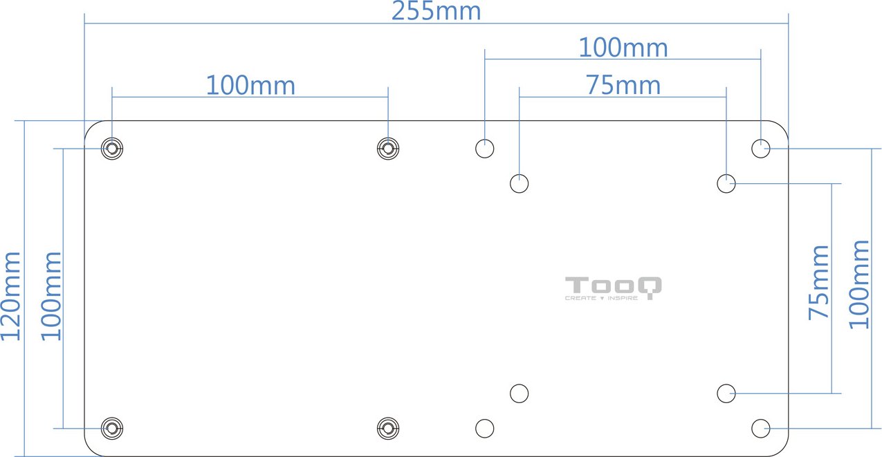 - Compatible con mini PC/NUC/barebone con VESA 100x100 a pantallas con VESA 75x75 y 100x100