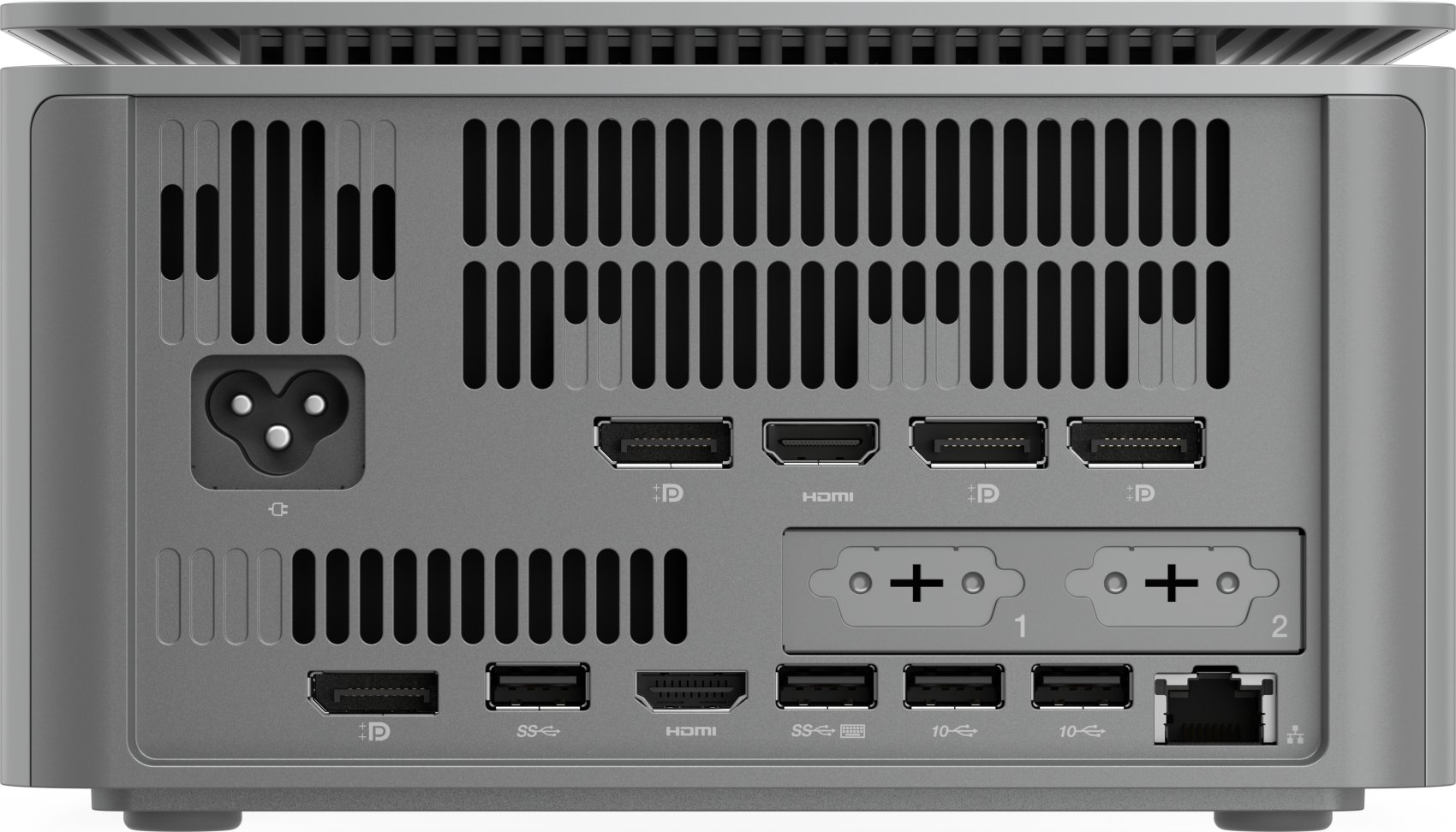 - Una amplia selección de puertos y ranuras que admiten hasta 8 pantallas