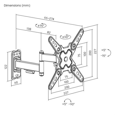 • VESA 75x75, 100x100, 100x200, 200x100, 200x200