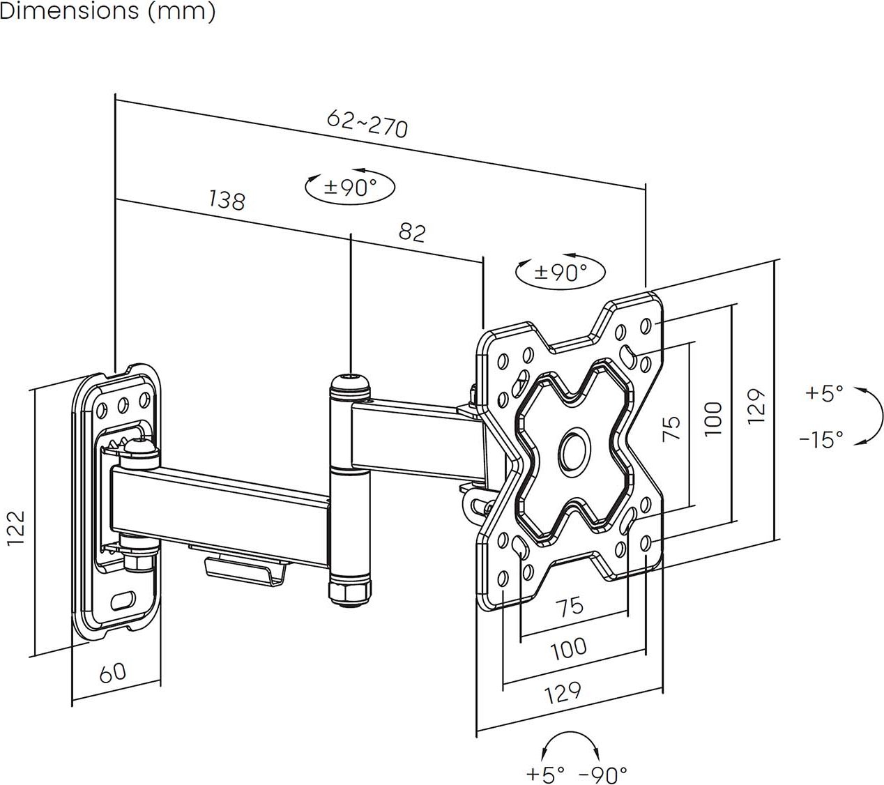 > Distancia de la pared: ajustable entre 62 y 270mm (depende de la instalación y del espacio disponible)