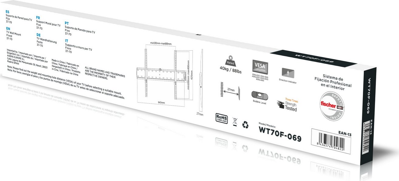 Soporte Pared Aisens Fijo 37"-70" Máx. 40kg (WT70F-069)