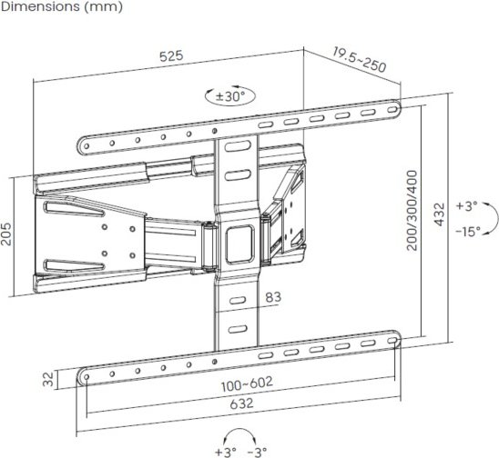 Fabricado con materiales de alta calidad, el soporte garantiza resistencia y estabilidad, sujetando firmemente el televisor en su sitio. A pesar de su perfil ultrafino, proporciona capacidades de movimiento completo, lo que le permite inclinar, girar y extender el televisor para lograr el ángulo de visión perfecto desde cualquier lugar de la habitación."