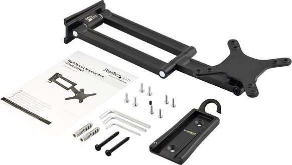 StarTech.com Soporte de pared de doble giro para monitor - Montura VESA para Pantallas de hasta 27 Pulgadas. Capacidad máxima de peso: 15 kg, Tamaño mínimo de pantalla: 33 cm (13"), Tamaño máximo de pantalla: 68,6 cm (27"), Compatibilidad con interfaz de montaje (min): 75 x 75 mm, Compatibilidad con interfaz de montaje (max): 100 x 100 mm. Ángulo de giro (alcance): -90 - 90°. Color del producto: Negro