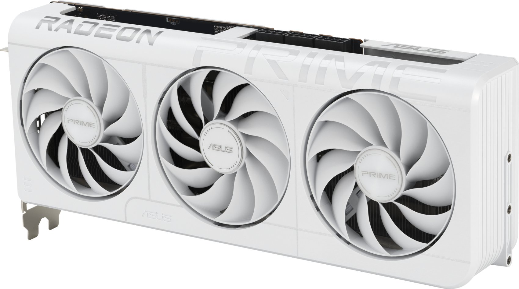 ASUS Prime -RX9070XT-O16G-WHITE. Familia de procesadores de gráficos: AMD, Procesador gráfico: Radeon RX 9070 XT, Frecuencia del procesador: 2460 MHz. Capacidad memoria de adaptador gráfico: 16 GB, Tipo de memoria de adaptador gráfico: GDDR6, Ancho de datos: 256 bit. Máxima resolución: 7680 x 4320 Pixeles. Versión OpenGL: 4.6. Tipo de interfaz: PCI Express 5.0. Tipo de enfriamiento: Activo, Número de ventiladores: 3 Ventilador(es)
