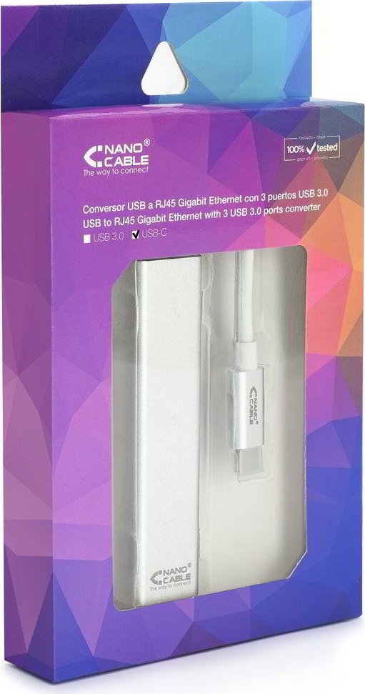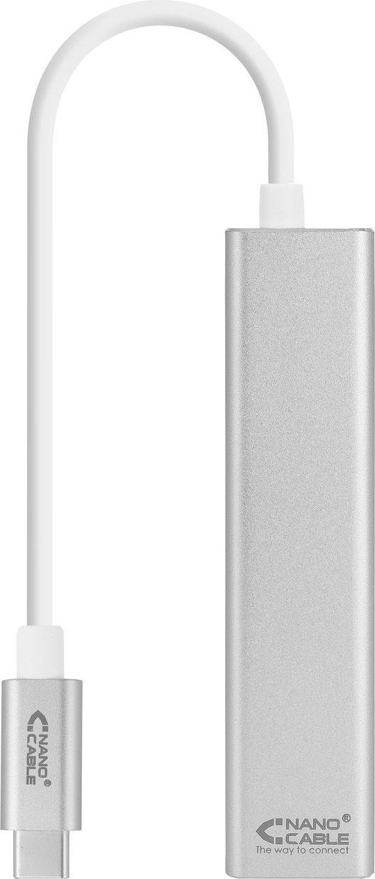 Nanocable Conversor USB-C a Ethernet Gigabit + 3xUSB 3.0, Plata, 15 cm. Tecnología de conectividad: Alámbrico, Interfaz de host: USB Tipo C, Interfaz: Ethernet. Rango máximo de transferencia de datos: 1000 Mbit/s. USB con suministro de corriente. Color del producto: Plata